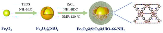 Microwave synthesis is a new method that has arisen in recent years. It is different from the solvent (water) thermal method in the heating method; the microwave is an electromagnetic wave. When it comes into contact with any substance, electromagnetic waves will undergo charge movement and direct contact, so the occurrence time is shorter and the heat transfer is faster. The solution is usually heated by microwave for 1 h or more to obtain crystals with nano-scale (usually 15 nm) particle size [102]. Peterson et al. [103] used ZrCl4 and 2-aminoterephthalic acid to dissolve in DMF solvent and synthesized pale-yellow powder UiO-66-NH2 by the microwave-assisted solvothermal method. The lack of significant change suggested that the material is essentially structurally intact with no skeletal bond cleavage upon exposure to NO2. They improved the adsorption capacity of NO2 and reduced the generation of by-product NO relative to UiO-66 [101].