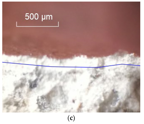 Cross-sections of the treated RCA (magnification: 40). (a) S_C0.7; (b) S_C1.0; (c) S_C1.3.