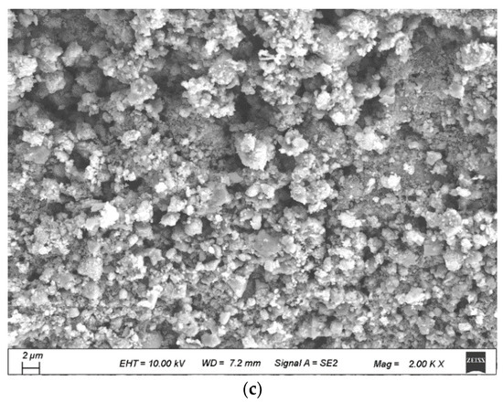 When the cement-based slurry was used to strengthen the RCA, partial particles penetrated into the pores and cracks of the old mortar, and partial particles stuck on the surface of the RCA. The strengthening mechanisms were cement reaction and Pozzolanic reaction, as shown in Equations (6) and (7) [31].