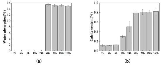 Water absorption and calcite mass test: (a) water absorption test results of specimens, (b) calcite content test results of specimens.