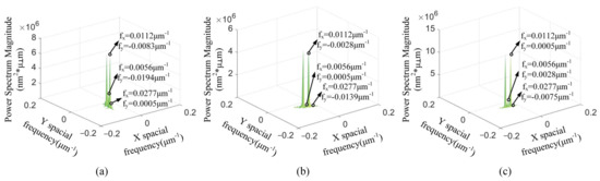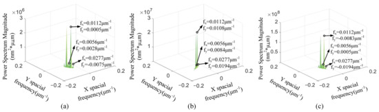 The 2D PSD results with different spindle speeds: (a) n = 1300 r/min, (b) n = 1400 r/min, (c) n = 1500 r/min.