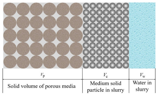 Considering the influence of slurry particles on porosity, through the homogenization hypothesis (as shown in Figure 2), the actual average porosity in the injected porous media can be obtained as follows: