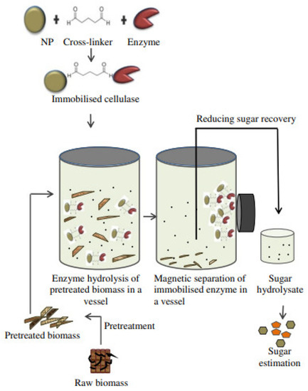 The authors acknowledge the copyright permission (Creative Commons Attribution License) for reproducing Figure 1 from Suitability of magnetic nanoparticle immobilised cellulases in enhancing enzymatic saccharification of pretreated hemp biomass by R.E. Abraham et al., published 11 June 2014 in Biotechnology for Biofuels and Bioproducts. The rights for Figure 5A–C belong to Springer Nature.