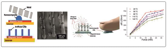 - Alfadhel, A.; Kosel, J. Magnetic Nanocomposite Cilia Tactile Sensor. Adv. Mater. 2015, 27, 7888. [Google Scholar]