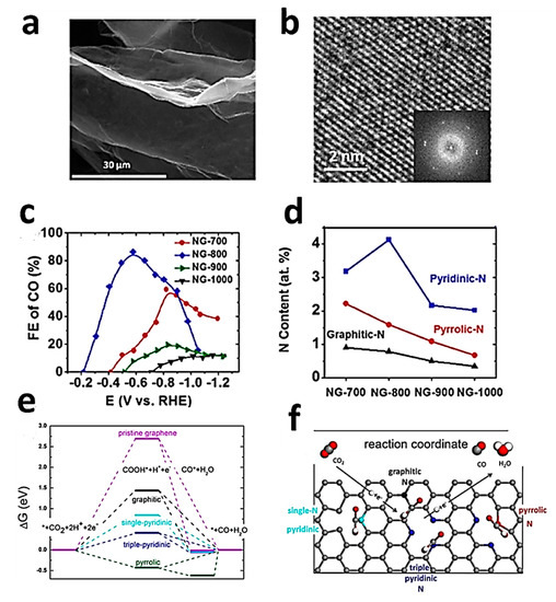 - Wu, J.; Liu, M.; Sharma, P.P.; Yadav, R.M.; Ma, L.; Yang, Y.; Zou, X.; Zhou, X.-D.; Vajtai, R.; Yakobson, B.I.; et al. Incorporation of nitrogen defects for efficient reduction of CO2 via two-electron pathway on three-dimensional graphene foam. Nano Lett. 2016, 16, 466–470. [Google Scholar] [CrossRef]