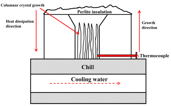 The schematic device of DS (directionally solidified) cast Fe–B alloy.