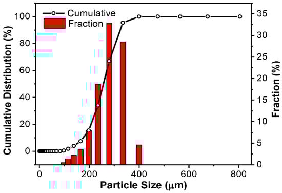 DL-MC particle size distribution was also investigated by using a particle size analyzer. As shown in Figure 4, the particle showed an almost normal distribution in the range of 100 to 400 μm. The average particle diameter was ca. 309 μm.