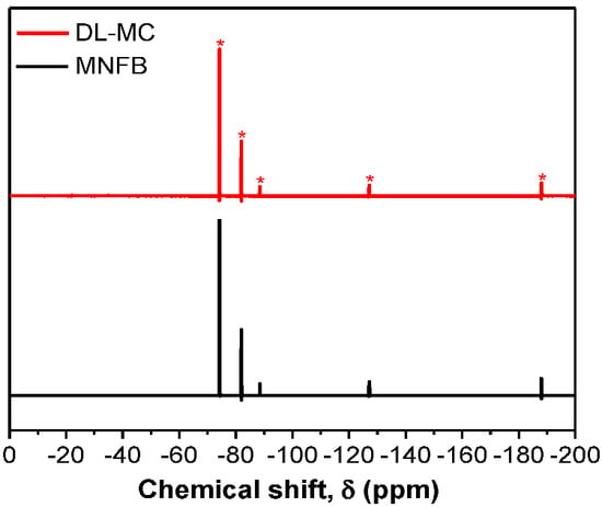 19F−NMR spectra of non-flammable liquid and DL-MC.