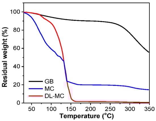Thermogravimetric analysis (TGA) of GB, MC and DL-MC.