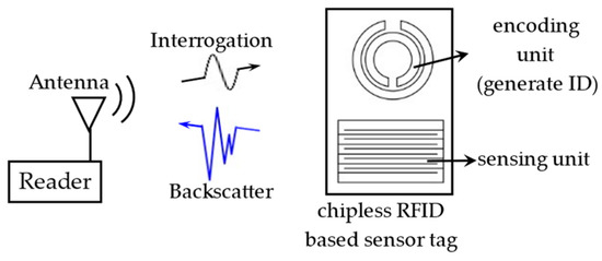 The block diagram of the chipless RFID-based sensor system is shown in Figure 12. Chip-less RFID does not require integrated chips or digital circuits, making the RFID system simpler and more convenient.