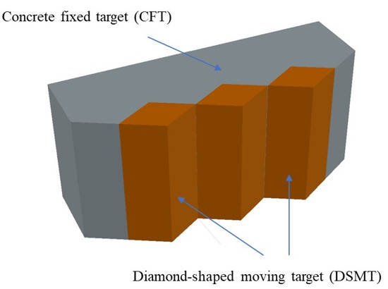 Schematic diagram of composite concrete target plate with diamond-shaped moving targets.
