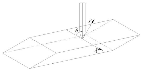 The composite concrete target consists of multiple diamond-shaped moving targets and a concrete fixed target, as shown in Figure 1. The coordinate system of the projectile penetrating the diamond-shaped moving target is presented in Figure 2. The coordinate origin represents the impact point of the projectile, and the x-axis is parallel with the penetrated surface of the diamond-shaped moving target. is the angle between the projectile and the penetrated surface.