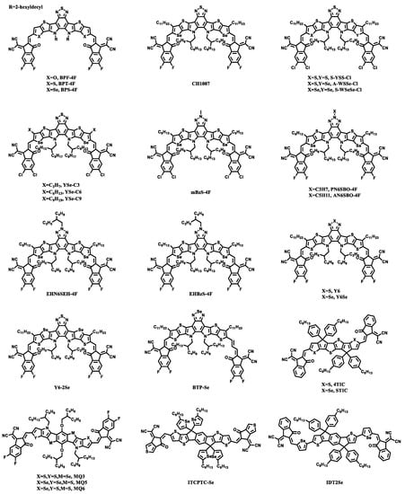 2.1.1. NFAs with Selenophene as Molecular Core or Side Chain