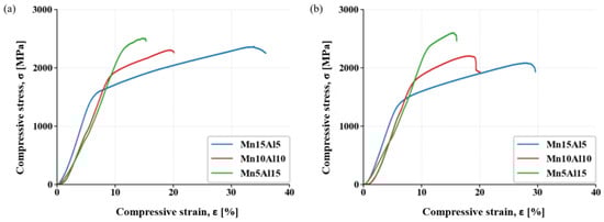 The prepared compacts were also investigated using compressive stress–strain testing at laboratory temperature after compaction. It was discovered that with increasing the content of Al, the compressive yield strength (CYS) and ultimate compressive strength (UCS) values increased (