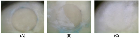 Representative images of failure patterns after the shear test: (A) unclassified failure; (B) mixed failure; (C) adhesive failure.