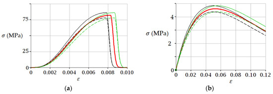 The seeming illogic (sign≤) in fracture criteria (11) and (12) is explained by the fact that the stress σ is determined at a point on the descending branch of the full stress–strain curve Figure 2), that is, in this case the strain increases, but the stress decreases [50,55].