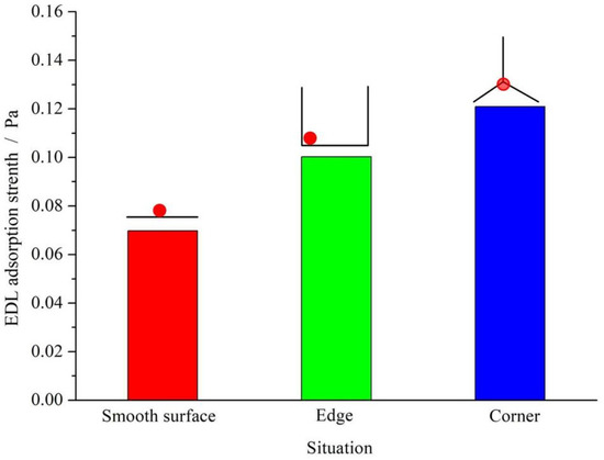 It can be seen from Table 2, that, when the Zeta potential ζ = 9.26 mV, the theoretical values of the contact angle agreed well with the measured values. This means that the EDL electrostatic force was an important factor affecting the wettability. Meanwhile, the EDL made the surface more hydrophilic.