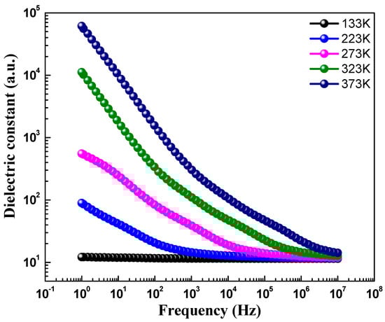 Dielectric constant versus frequency curve of CeFe2O4 nanostructures at different temperatures.