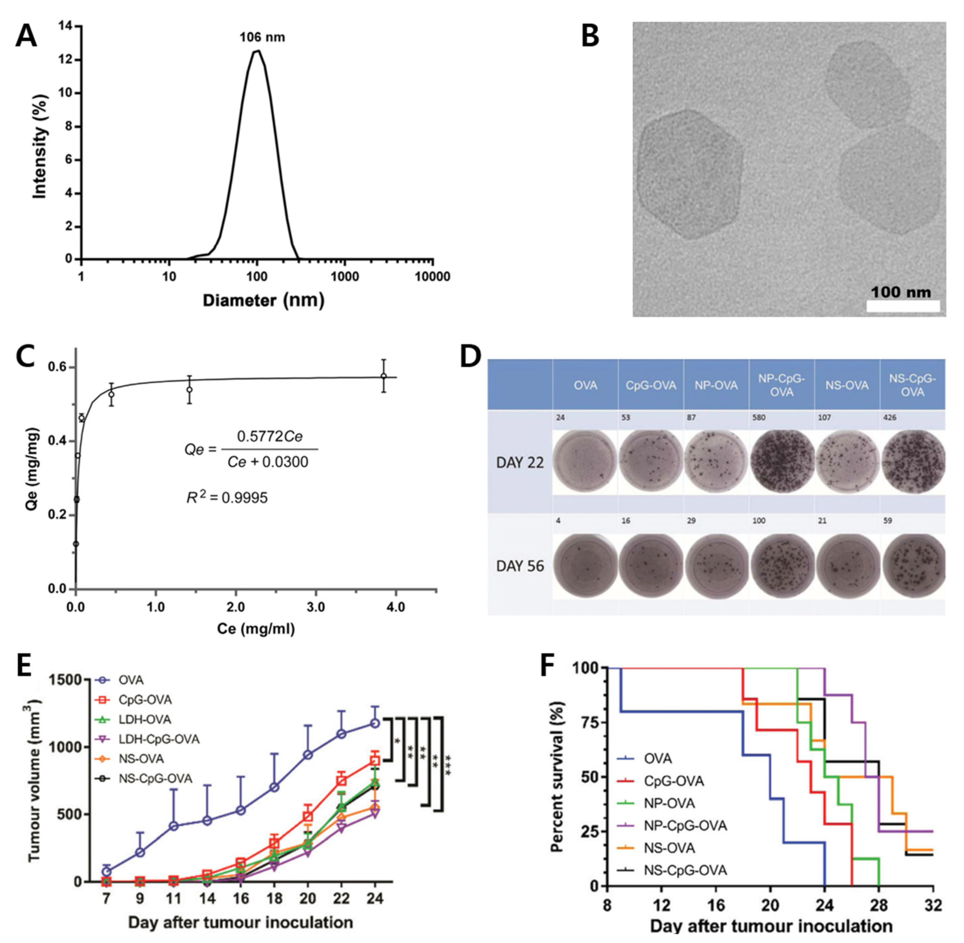 | MgAl | Co-precipitation | OVA | E.G7-OVA cells, female C57BL/6 mice | Immunotherapy | Demonstration of protein-based antitumor vaccine adjuvants | [63] |