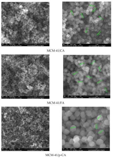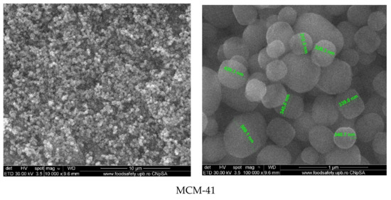 SEM images of MCM-41 mesoporous materials loaded with polyphenols.