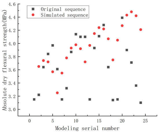Comparison of the original sequence and the simulated sequence in absolute dry flexural strength of the phosphorus building gypsum modified by ball milling.