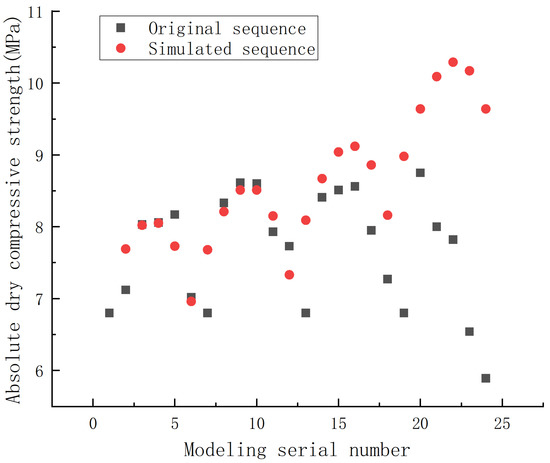 Comparison of the original sequence and the simulated sequence in absolute dry compressive strength of the phosphorus building gypsum modified by ball milling.
