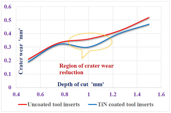 - The wear pattern microscopic images taken after the turning tests unveiled that the uncoated tungsten carbide inserts reported the microscopic patches and nucleation of cracks as well as voids of maximum size and crater depth of 0.2 mm. As a result, multilayered Titanium Nitride-coated turning tool inserts have shown superior wear resistance by reducing crack nucleation and voids by 0.07 mm.