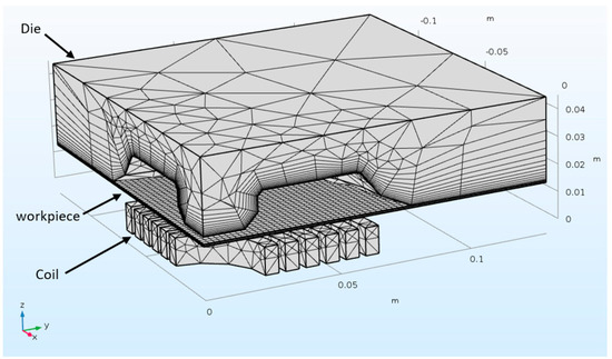 Mesh of EMF closed die for the electromagnetic forming of AA6061-T6.