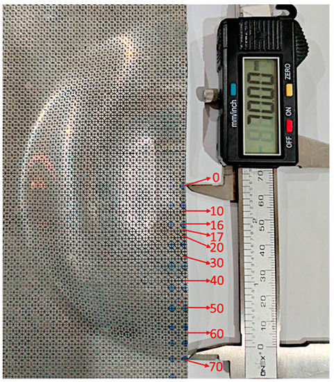Measurement point locations on the deformed AA6061 T6 sheet.