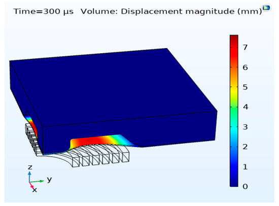 Due to the transient current in the coil, the induced current in the workpiece is produced that results in the Lorentz force between the coil and workpiece. The Lorentz force produced deforms the workpiece based on displacement equilibrium [22] Equation (11).