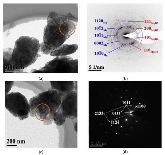 Thus, the composition of magnesium hydride usually involves magnesium hydride, magnesium metal, which is present in the core of the particles [52] (Figure 10b), and magnesium hydroxide contamination, which is usually present in the form of an amorphous layer on the surface of the particles [88]. However, it should be noted from Figure 10b that some Mg particles with small sizes are completely hydrogenated.