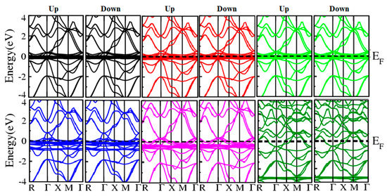 The electronic characteristics of these Ln3NIn (Ln = Dy-Lu) are estimated by HF potential using electronic band structures for these compounds in the anti-ferromagnetic configuration presented in Figure 6.