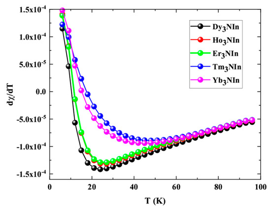 Derivative of magnetic susceptibility of the rare earth nitrides Ln3NIn (Ln = Dy-Lu)anti-Perovskite.