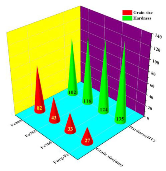 3.1. Grain Growth and Hardness Variation