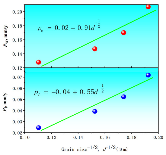 - A spectrum of ferrite grain size was gained by changing the annealed temperature. Hardness (HV) and biodegradation rate (Pi or Pw) were linearly ferrite grain size-dependent: