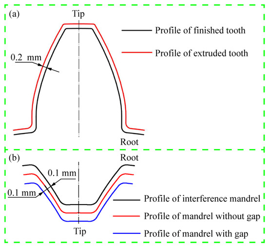 - When the interference mandrel is used for the precision finishing process, the entire profiles of internal–external teeth will occur plastic deformation, and the finishing effect is better than mandrels both with gap and without gap. Therefore, the interference mandrel is recommended as the optimal reshaping tool to improve the tooth accuracy of cold extruded sun gear.