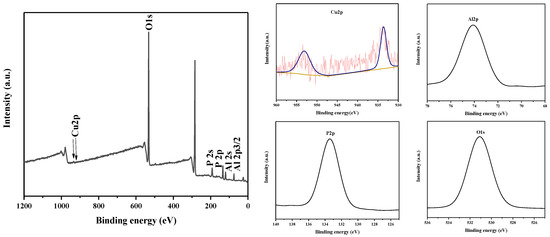 The near-range XPS spectra of Al2p, O1s, P2p, and Cu2p, as well as the full-range XPS measurement spectrum of CuAPO-5, are shown in Figure 3, indicating the presence of O, Al, P, and Cu in the CuAPO-5 material. By XPS analysis of CuAPO-5, the oxidation state and binding energy of copper atoms in AlPO4-5 framework were obtained. In Figure 3, the XPS survey spectrum of Cu 2p is shown. According to the literature, the Cu 2p1/2 and Cu 2p3/2 signals located around 952.2 and 932.6 eV, respectively, revealed that Cu is in its divalent [28].