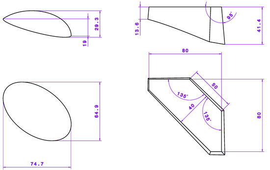 In addition to the base geometry, two attachments with fundamentally different geometries were also defined. The base surface of the attachments is identical to the nominal surface of the base geometry, so that the contact surface of the additively manufactured attachments corresponds to the surface of the interpolation layer. One attachment geometry has a round shape, while the other is angular. The dimensions of the two attachments are shown in Figure 5. The two geometries represent two possible applications. The round geometry could, for example, represent a recessed grip, such as on the outer door handles of car doors. The angular geometry could represent a cable bushing or a reinforcement for a small window or control panel.