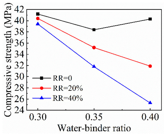 Variation of recycled mortar compressive strength with w/b ratio. RR represents replacement ratio of fly ash.
