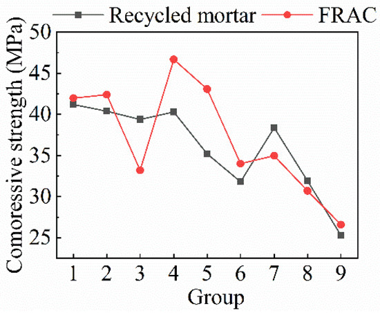 4.3.3. The Relationship of Compressive Strength between FRAC and Recycled Mortar