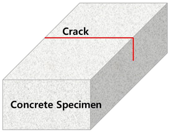The ultrasonic pulse rate is affected by factors such as the cement type [21], aggregate type and size, water-to-cement ratio, distance between transducers, admixture, transducer location, and concrete lifetime [22]. Therefore, for the evaluation of cracks in the concrete structures, concrete specimens were prepared with a mixing ratio similar to that of the actual high-risk facility structures, and the experimental equipment was also configured in the same way as that applicable to the actual inspection. Table 7 shows the concrete mixing ratio.