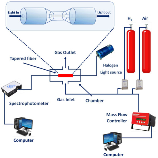 - Alkhabet, M.M.; Girei, S.H.; Paiman, S.; Arsad, N.; Mahdi, M.A.; Yaacob, M.H. Highly Sensitive Hydrogen Sensor Based on Palladium-Coated Tapered Optical Fiber at Room Temperature. Eng. Proc. 2020, 2, 8. [Google Scholar]