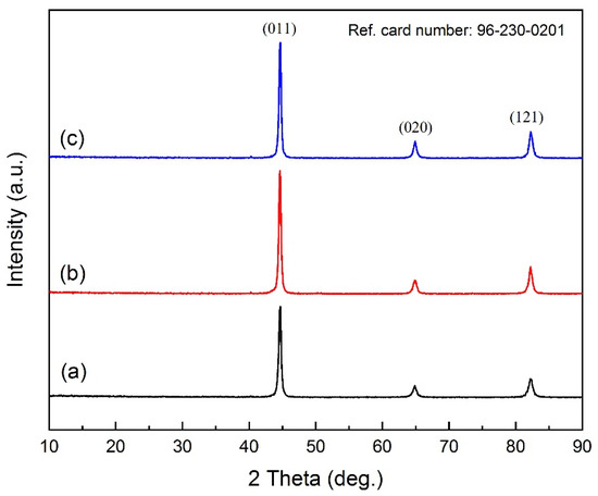 XRD patterns of welded samples. (a) the first weld, (b) the second weld, and (c) the thirdweld.