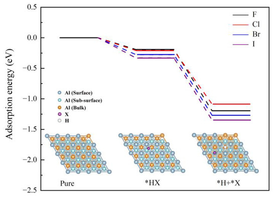 The adsorption energies ( E ads ) of HX (X = F, Cl, Br and I) on the Al (111) surface were calculated using Equation (1):