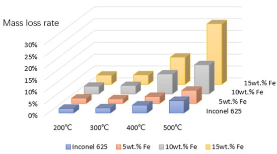 Weight-loss rate of Fe content in cladding layers at different temperatures.