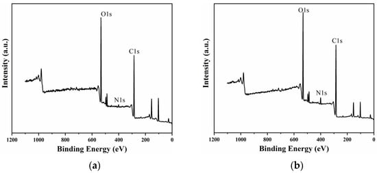 In addition to the porous structure, the aforementioned changes in the coating surface morphology were determined to a large extent by its molecular structure evolution. Figure 8 provides the XPS spectra of the coating surface before and after CE 30 h. The figure shows that the peak absorption intensity of N was enhanced after CE. Because O 1s was mainly provided by the soft segment (PTMG1000) and N 1s was all from the hard segment (IPDI), the atomic ratio of O to N in XPS could be used to indirectly evaluate the relative content of the soft segment and the hard segment on the sample surface [40]. The atomic ratio of two elements could be obtained by calculating their peak areas according to Equation (1) [41]: