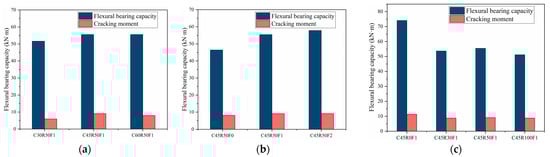 Flexural bearing capacity of SFRAC beams. (a) Concrete strength, (b) steel fiber volume fraction, (c) recycled aggregate replacement ratio.