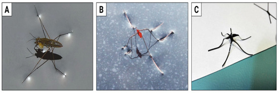 - Koh, J.-S.; Yang, E.; Jung, G.-P.; Jung, S.-P.; Son, J.H.; Lee, S.-I.; Jablonski, P.G.; Wood, R.J.; Kim, H.-Y.; Cho, K.-J. Jumping on Water: Surface Tension–Dominated Jumping of Water Striders and Robotic Insects. Science 2015, 349, 517–521. [Google Scholar] [CrossRef]