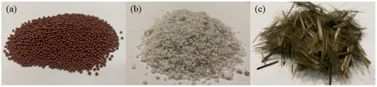 (a) Ceramsite; (b) glazed hollow beads; (c) basalt fiber.