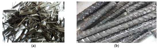 Composite bars (fiber-reinforced polymer—FRP) have been available on the international market as concrete reinforcement for 15 years. FRP is a family of materials with diverse properties that can be altered at the production stage []. The following can be distinguished: glass fiber (GFRP), carbon (CFRP), aramid (AFRP), and basalt (BFRP) bars []. Currently, due to its durability, electromagnetic neutrality, high strength, and lightness, each year over 10 million meters of this type of material is used in construction []. FRP bars are lightweight, corrosion-resistant, and have high tensile strength. Therefore, many researchers have used FRP bars as an alternative to the traditional steel bars in RC members subjected to monotonic and cyclic loading. Although FRP bars have several advantages, they are not widely used in construction because they are brittle and can decrease the ductility and bond strength of the RC members [].
